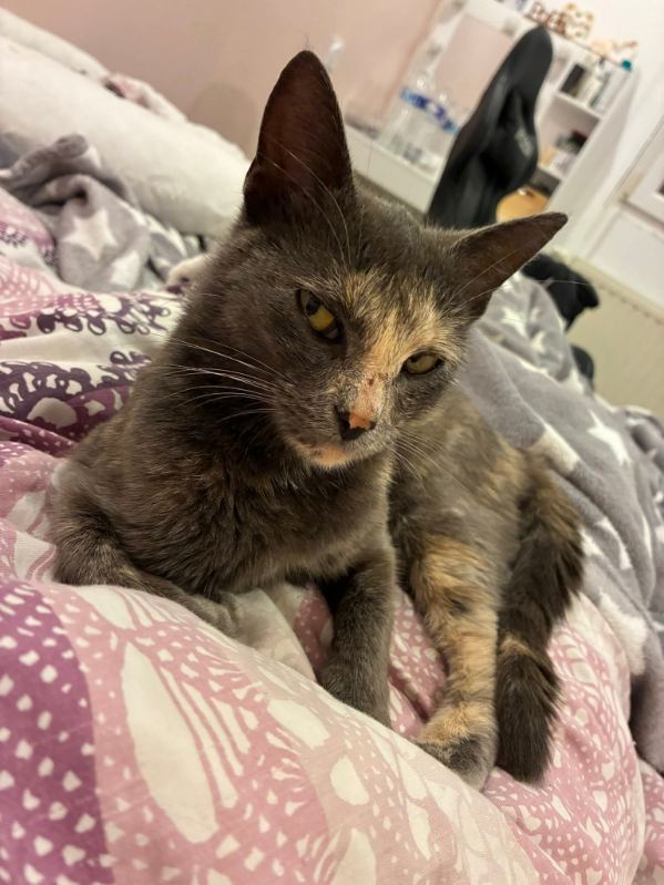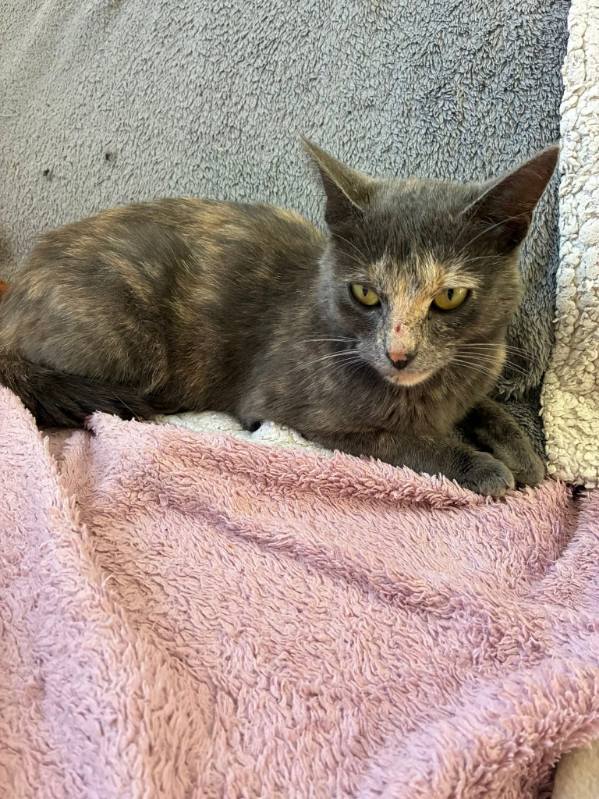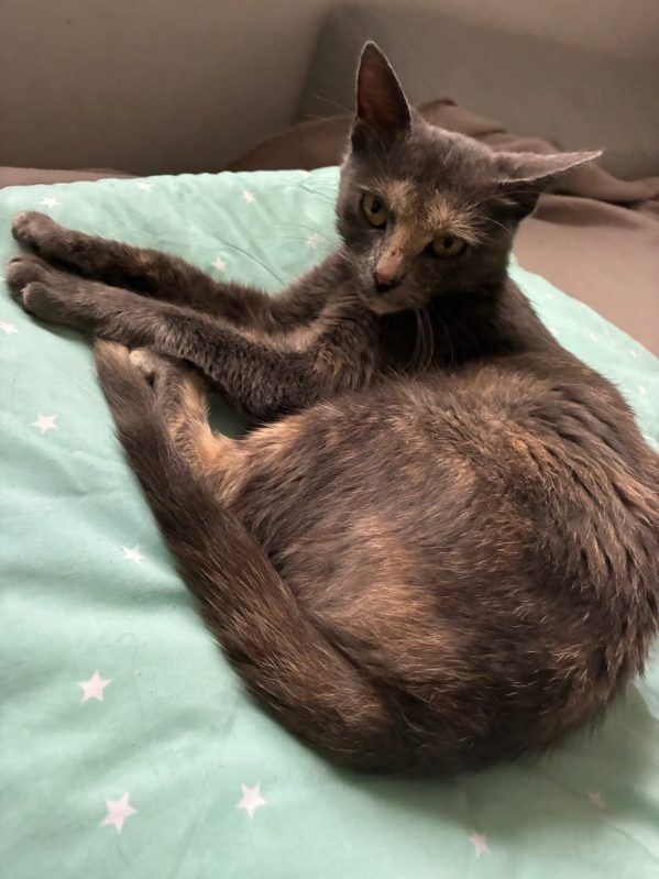 Dora est une jolie minette d’1 an au beau pelage écaille de tortue (assez rare)