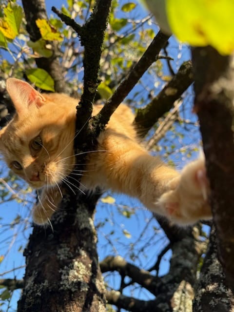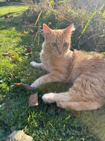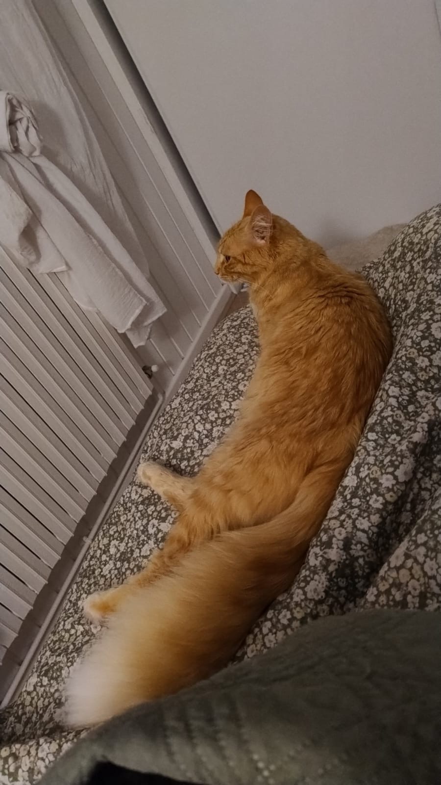 Hubert est un matou d’environ 2 ans à poils mi-longs et queue en panache